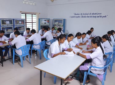 At KLR Physiotherapy College, our classrooms blend comfort and innovation to create the perfect learning environment. Bright, spacious, and tech-enabled, they feature smart boards, ergonomic seating, and interactive learning tools – all designed to make complex concepts clearer. Natural light floods in through large windows, while climate control ensures comfort year-round. From anatomy diagrams that come alive on digital screens to flexible seating that adapts to different learning styles, every detail is thoughtfully planned to help you focus, engage, and excel in your physiotherapy education.