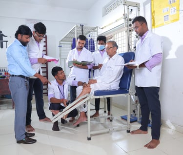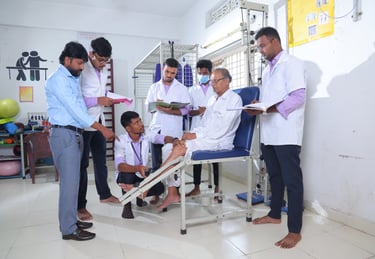 At KLR Physiotherapy College, we believe great therapists are made through real experience, not just classroom lessons. Our students don't just read about treatments - they practice them daily in working hospitals and clinics from their first year. Guided by experienced professionals, they learn to assess real patients, solve actual cases, and make treatment decisions in real-time. This hands-on training means our graduates don't just know physiotherapy - they've lived it. They understand patient needs, can handle the pace of a real clinic, and walk into their first job with confidence. Because just like you can't learn to swim without getting in the water, you can't become a skilled physiotherapist without working where healing happens every day.